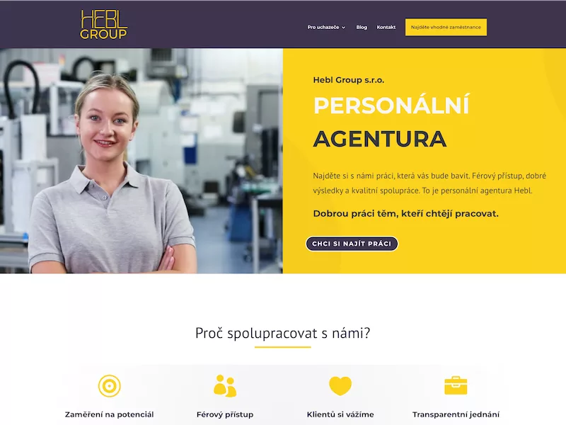 Webová prezentace personální agentury Hebl Group.