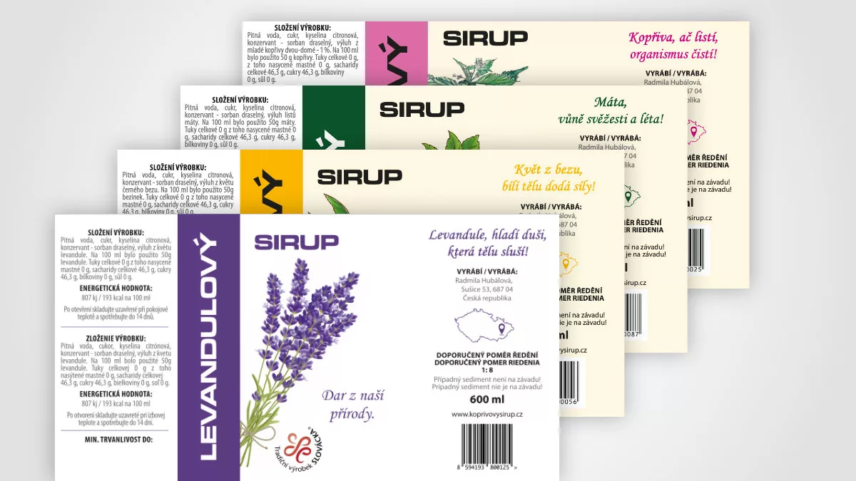 Mutace etiket na sirupy, tisk.
