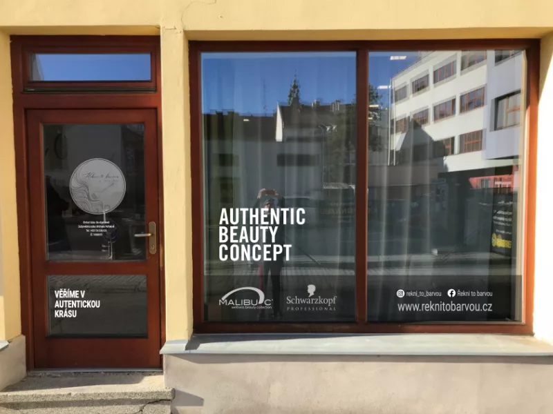Grafický návrh a realizace polepu výlohy provozovny kadeřnictví.